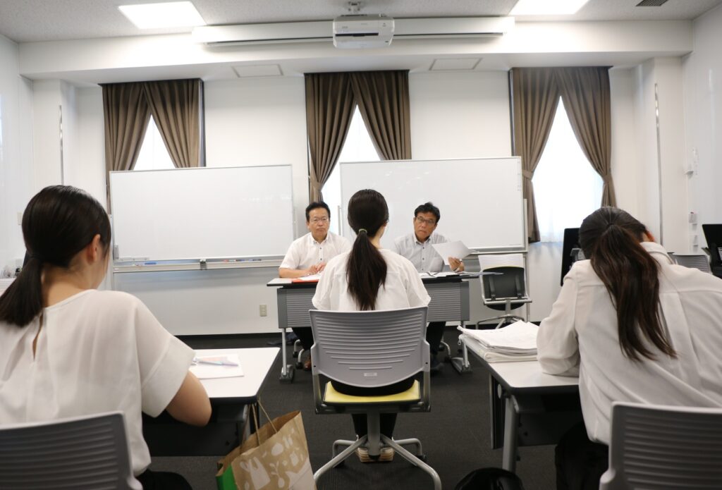 健康科学科では、採用試験の受験は学生の自主性に任せておりますが、受験する学生のために年間100回以上にわたる採用試験対策を開催しています。1・2年生用の採用試験入門講座、3・4年生向けの採用試験対策講座に加え、試験直前までの二次対策や卒業生も含めての対策を実施しています。採用試験対策は、卒業生も参加できるよう土日での開催や、平日夕方以降にオンラインでの個別対応もしています。8月は毎日対応しています。